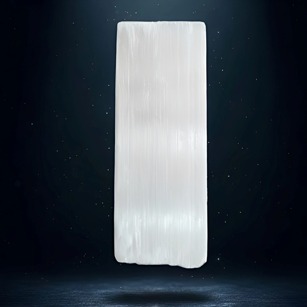 A selenita é uma pedra de alta vibração, ligada à luz, à serenidade e ao equilíbrio interior, sendo essencial em qualquer prática espiritual.