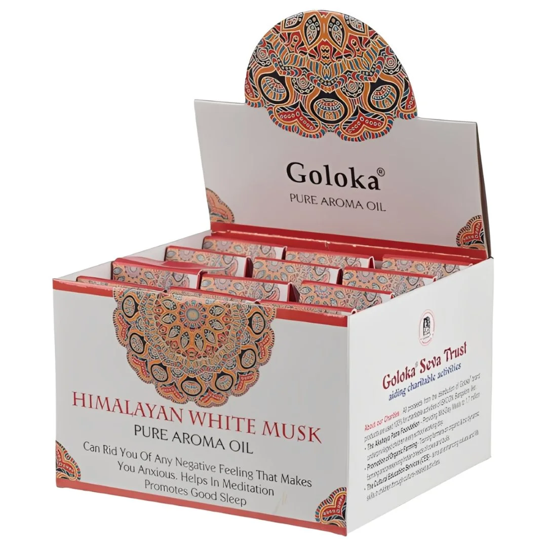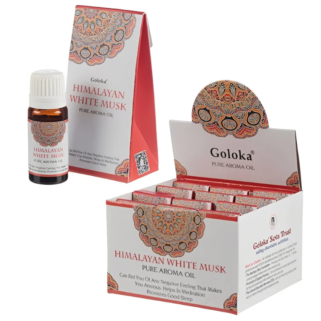Óleo Aromático de Almíscar Branco Goloka Himalayan White Musk com aroma suave e envolvente. Ideal para aromatização de ambientes e conforto diário.
