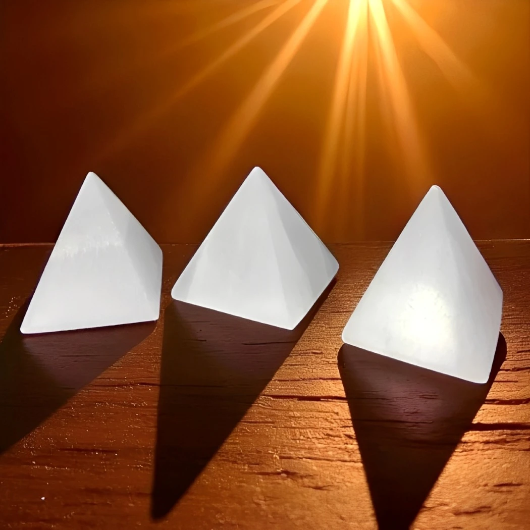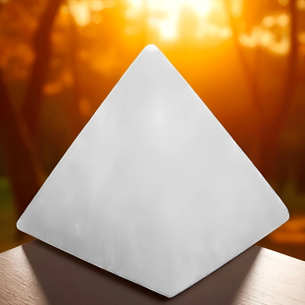 A Pirâmide de Selenita é um cristal que irradia pureza e serenidade, auxiliando na limpeza energética e na harmonização do ambiente. Sua forma piramidal potencializa o fluxo de luz, criando um campo protetor que afasta energias densas e favorece a meditação, a clareza mental e a conexão espiritual.
