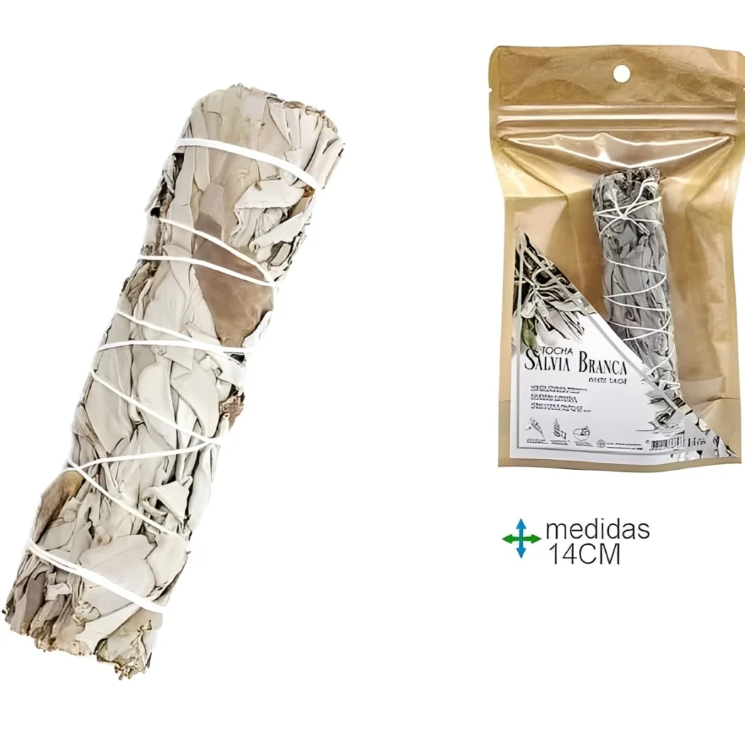 Perfeita para rituais lunares, banhos energéticos, limpeza de cristais ou meditação, a Tocha de Sálvia Branca 14cm é um aliado indispensável para quem busca equilíbrio, proteção e conexão espiritual profunda.
