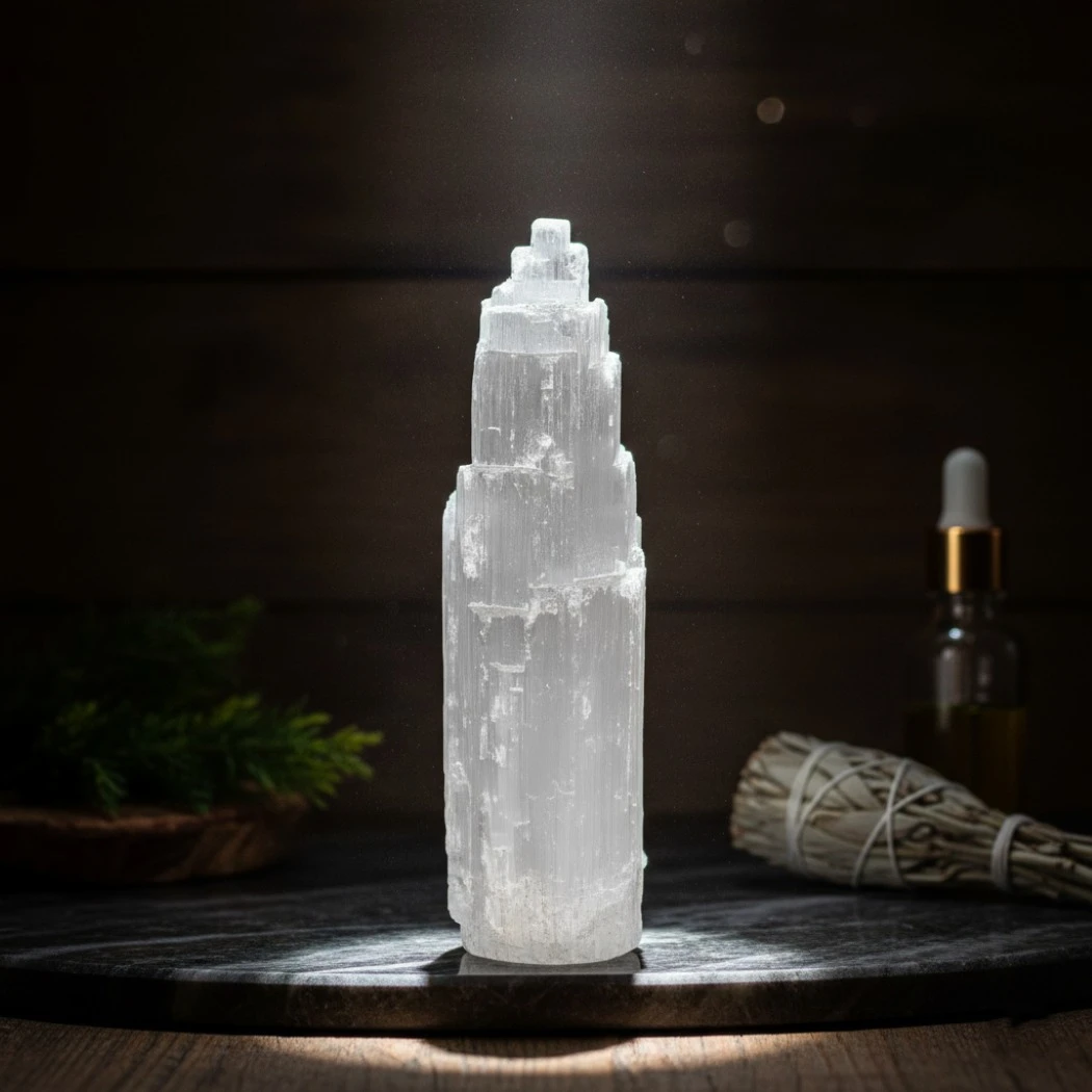 Em formato de torre, o cristal potencializa seu poder natural de purificação, emitindo ondas de luz e energia que limpam e harmonizam o espaço ao redor. É perfeita para altares, práticas de meditação e rituais de proteção energética.