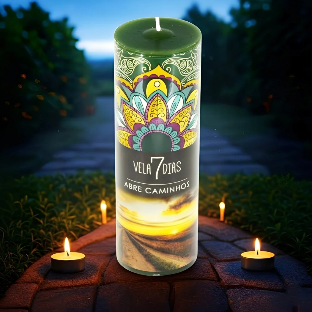 A Vela 7 Dias Abre Caminhos é um poderoso instrumento espiritual usado em rituais de abertura de caminhos e desbloqueio energético. O seu fogo contínuo durante sete dias simboliza força, fé e persistência, ajudando a afastar obstáculos e a atrair novas oportunidades.