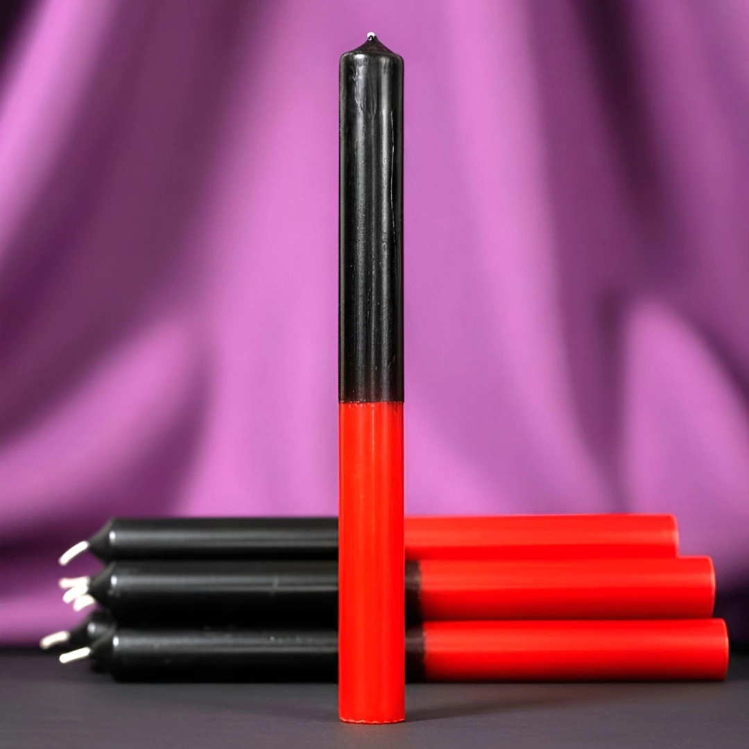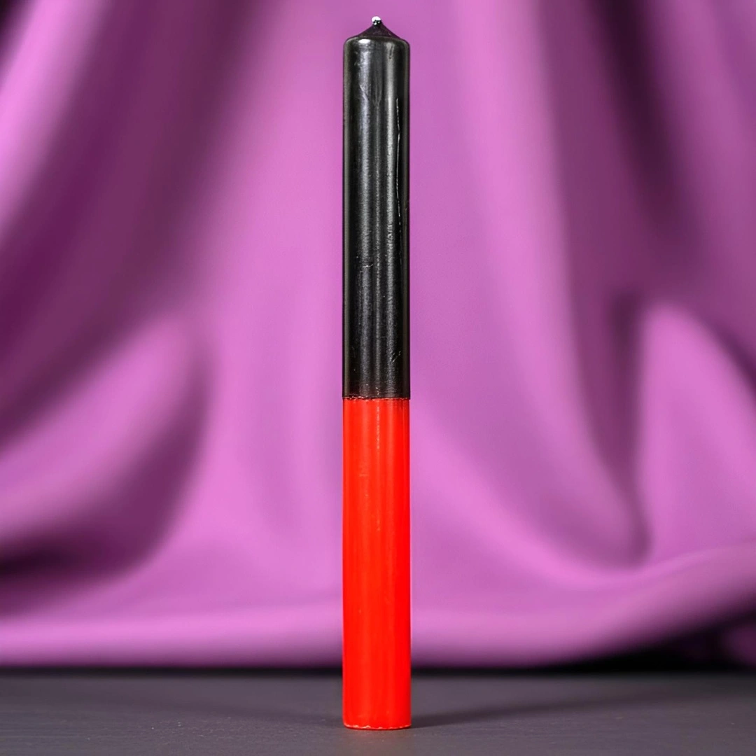 Vela Preta e Vermelha 15 cm ideal para força, proteção e intensidade energética. Perfeita para rituais de intenção, foco e equilíbrio espiritual.